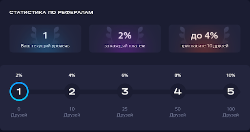 В личном кабинете казино предусмотрели определенный раздел, посвященный статистике результатов использования партнерских программ. Нужно только кликнуть по определенной ссылке и тогда игроки получают код приглашения UPX вместе с уровнем системы. Чем выше статус, тем выше размеры вознаграждений.